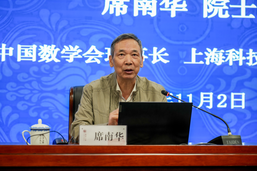 11月2日,中国科学院院士、中国数学会理事长、上海科技大学副校长席南华应邀作客我校省身讲堂第141讲,为师生作题为《朗兰兹纲领——寻根之旅》讲座。我校原副校长(主持日常工作)胡俊云主持讲座。