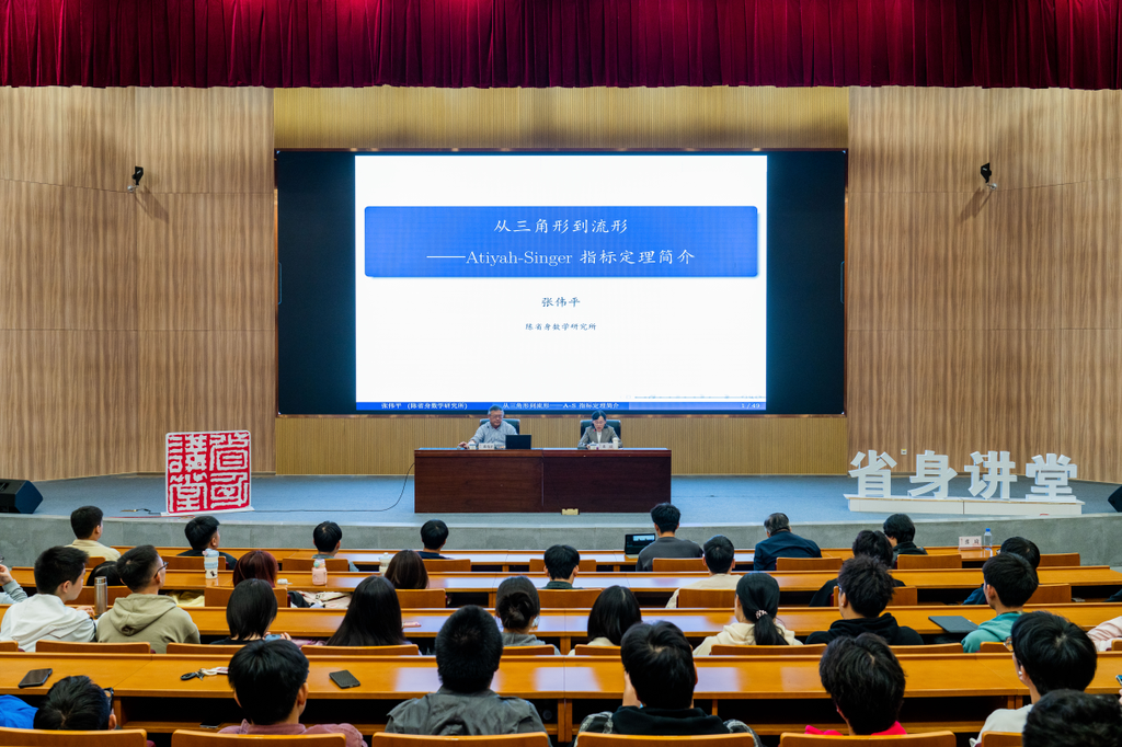 11月3日,中国科学院院士、南开大学教授、陈省身数学研究所研究员张伟平应邀作客我校省身讲堂第142讲,为师生作题为《从三角形到流形——阿蒂雅-辛格指标定理》的讲座。我校党委委员、副校长(主持日常工作)张琦主持讲座。