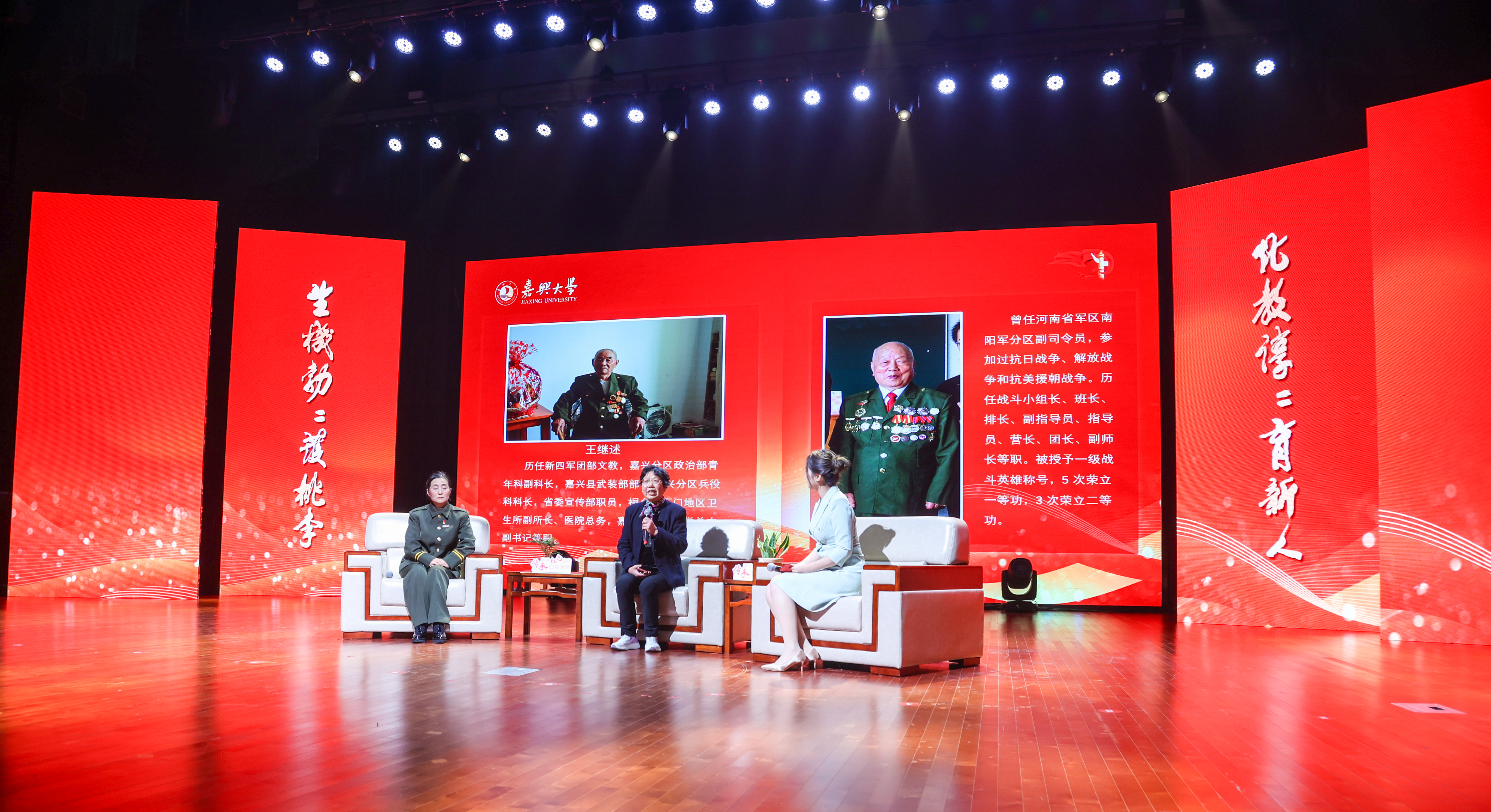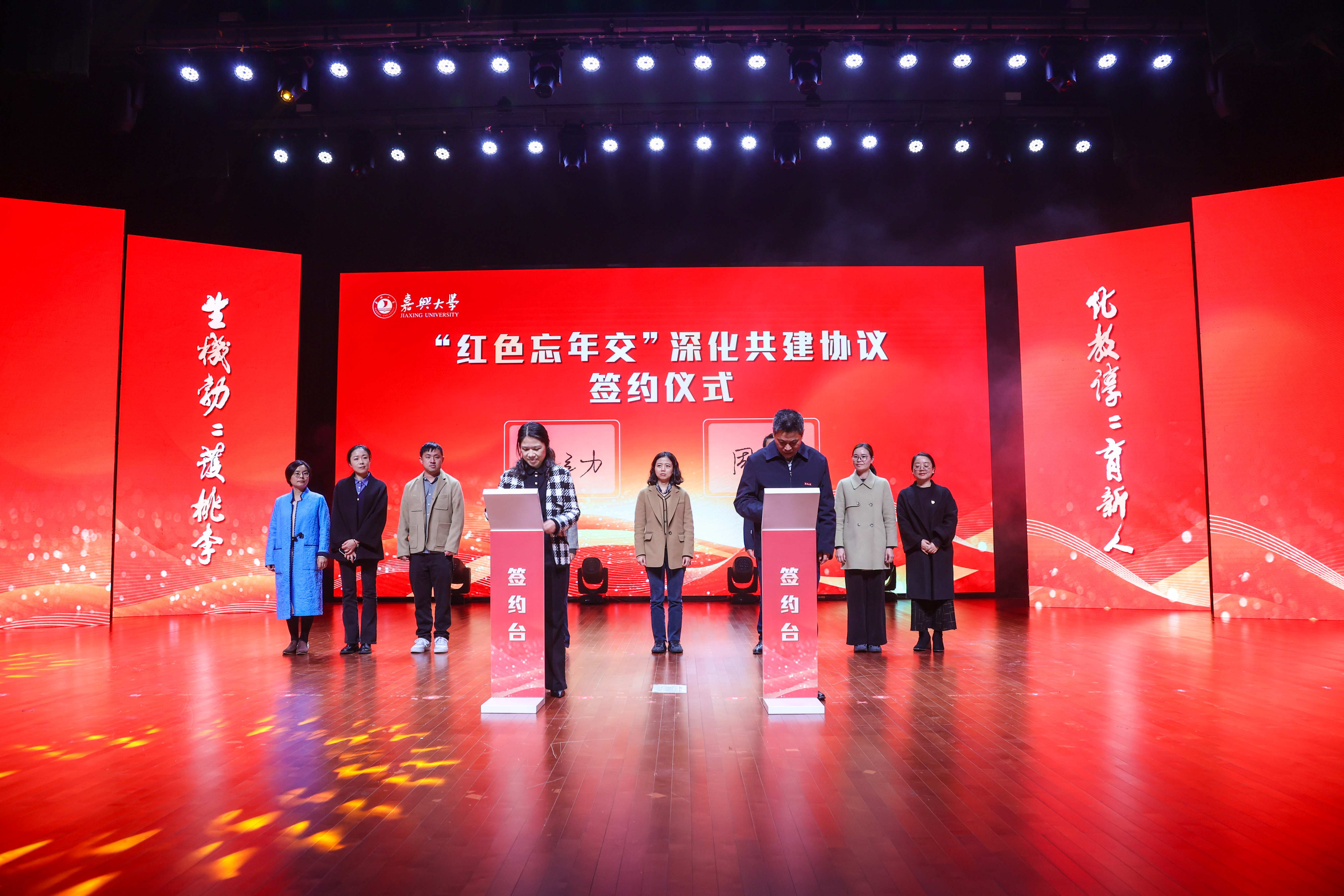 会上,陈立力与周军代表校会双方签订了“红色忘年交”深化共建协议;生化学院党委负责人为嘉兴市新四军历史研究会宣讲团的老同志颁发了校外辅导员聘书;张红宇为嘉兴大学大学生“红军连”授旗。