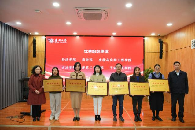 沈希和张琦共同为金牌导师、优秀导师、优秀组织单位颁发证书和奖牌,并慰问获奖学生团队代表。