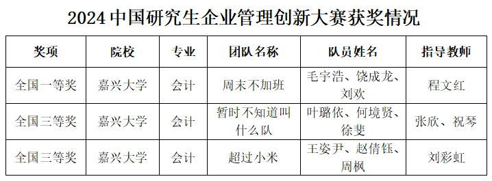 11月29日-12月1日,第二届(2024)中国研究生企业管理创新大赛全国总决赛在成都圆满落幕。我校研究生毛宇浩、饶成龙、刘欢组成的“周末不加班”队以复赛小组第一的入围总决赛并荣获全国一等奖,我校另2支参赛队伍获全国三等奖。
