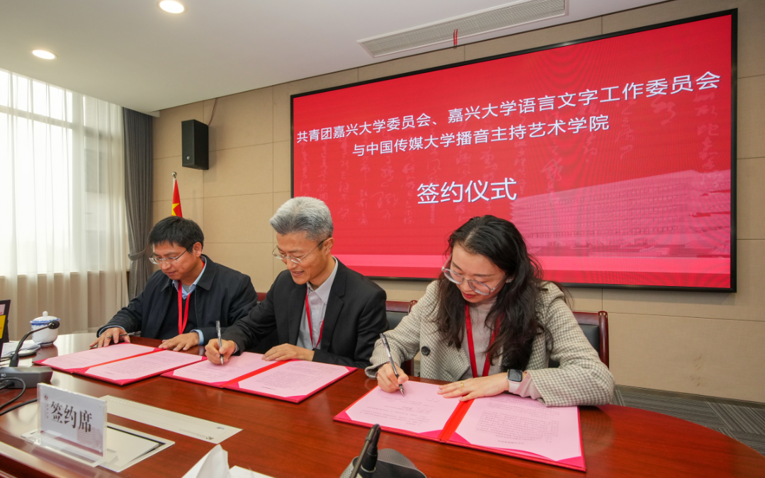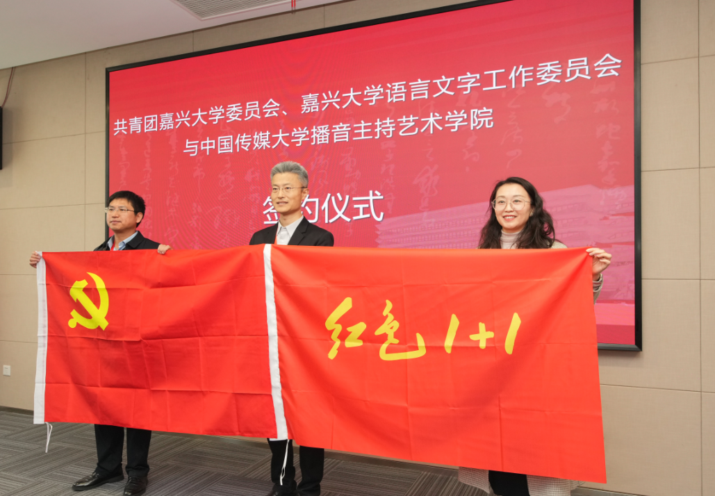 开幕式上举行了“红色1+1”合作签约仪式,共青团嘉兴大学委员会、嘉兴大学语言文字工作委员会与中国传媒大学播音主持艺术学院签署合作协议。两校将本着“优势互补、资源共享、互惠双赢、共同发展”的原则,深化学生红色共建、语言文字专业共建等,共同推进高素质人才培养,促进教育链、人才链与创新链有机衔接,实现产学研协同发展。