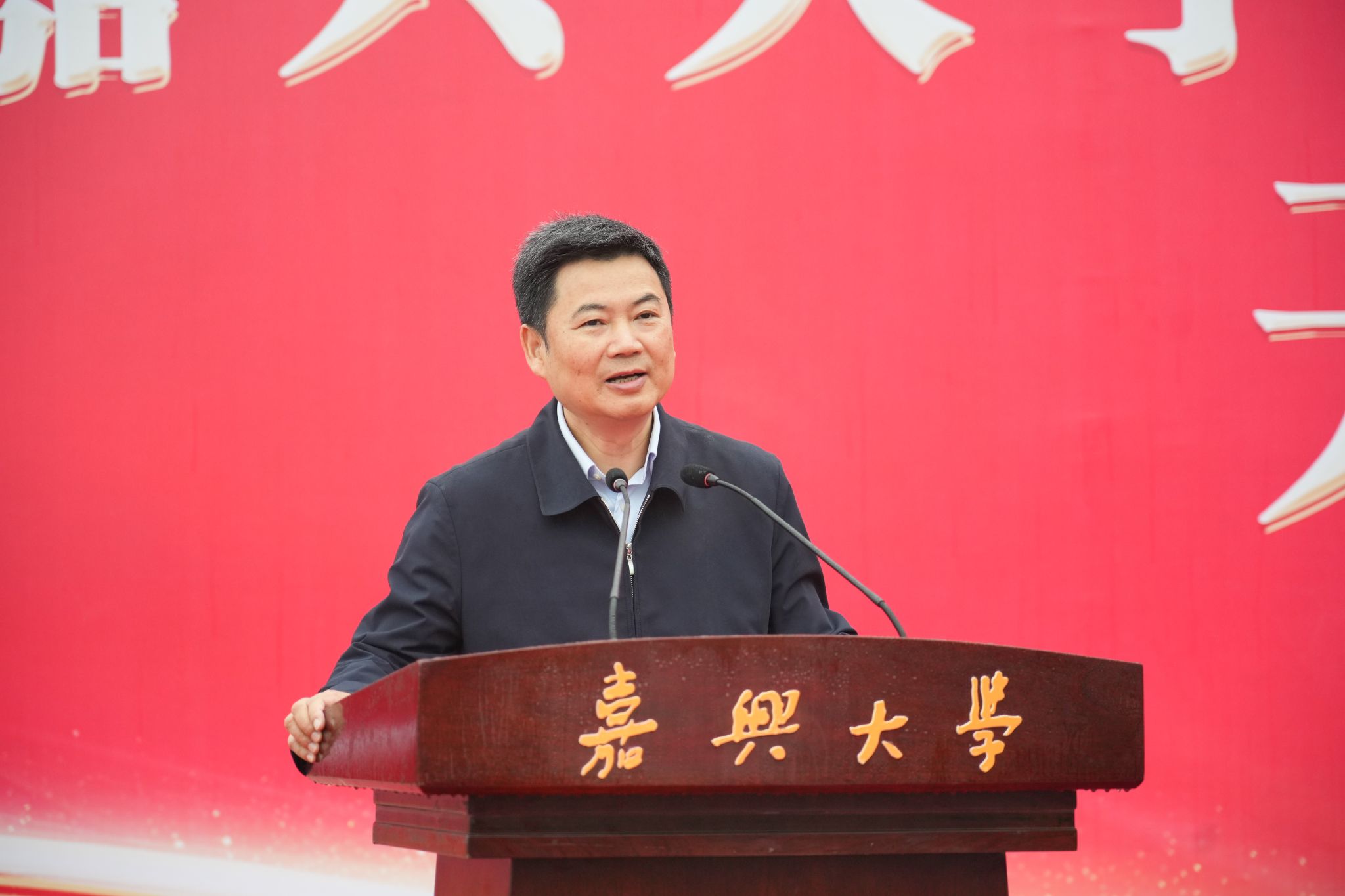 沈希宣布嘉兴大学学生公寓建设工程项目开工。