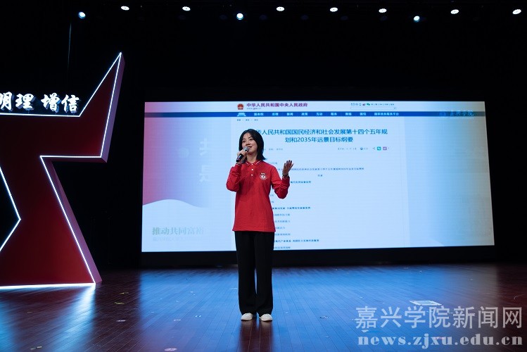 “为什么共同富裕示范区落地浙江?嘉兴又有什么优势?”仪式上,宣讲团成员、我校经济学院2020级学生潘吟笛作了主题为“凝聚青春力量 推动共同富裕”的首场宣讲。她通过“1个案例、5个重点、1个方案”,讲述了共同富裕的意义和本质、浙江高质量建设共同富裕示范区的任务和举措、嘉兴建设共同富裕示范区典范城市的案例和成效,号召青年大学生涵养经世济民的家国情怀,丰富学识、增长见识,为更好地实现共同富裕贡献青春力量。