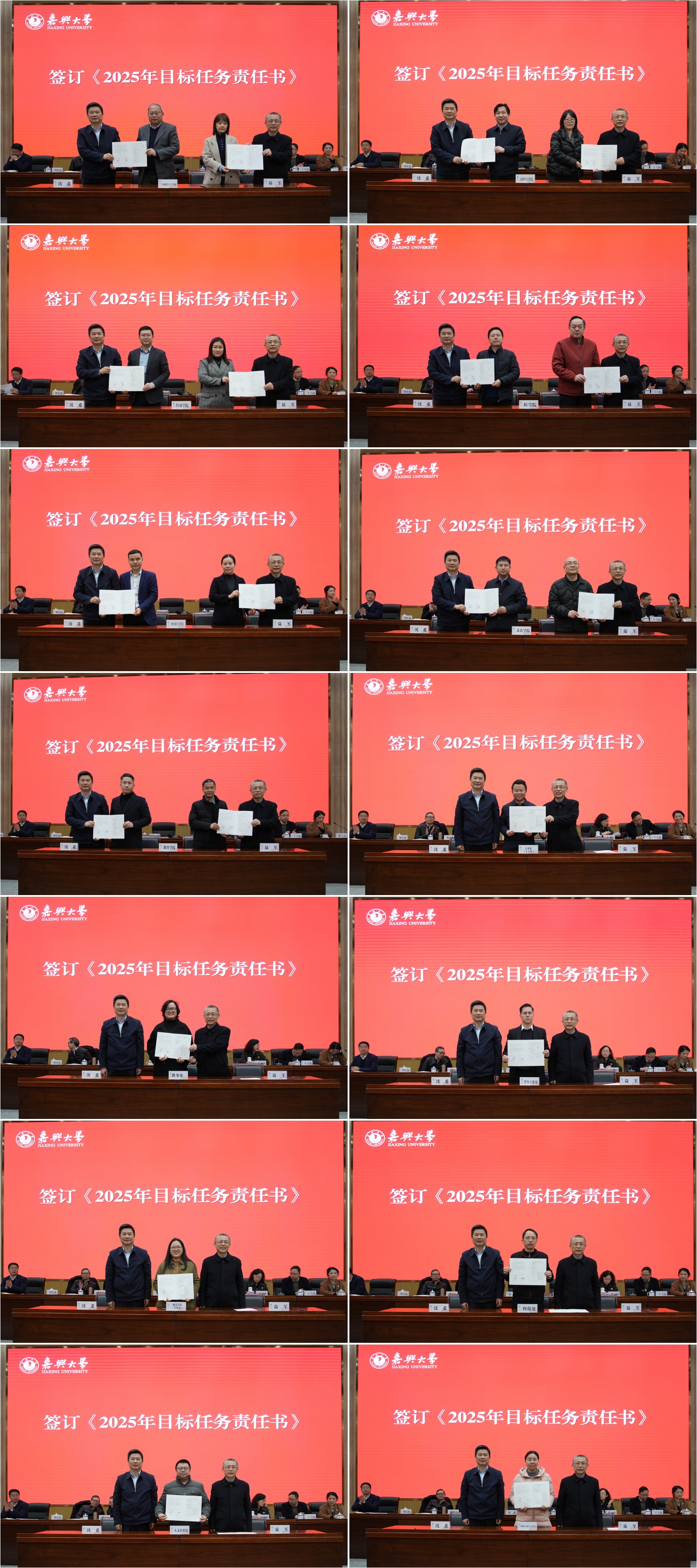 会上,沈希、陆军和学院、部门代表签订《2025年目标任务责任书》。