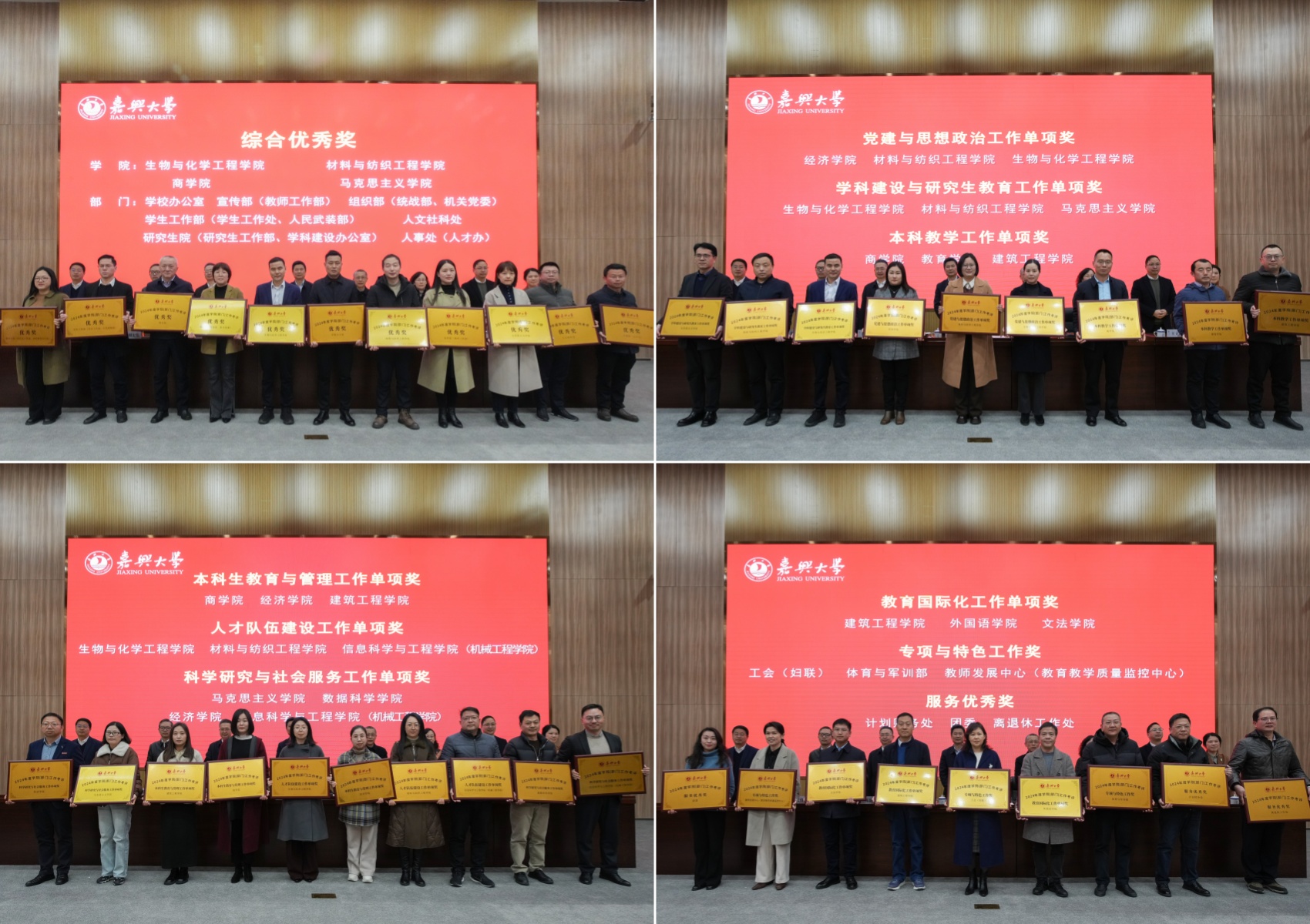 党委委员、副校长(主持日常工作)张琦宣读了学校2024年度学院(部门)工作考评结果。与会校领导为2024年度学院(部门)工作考评优秀单位颁奖。