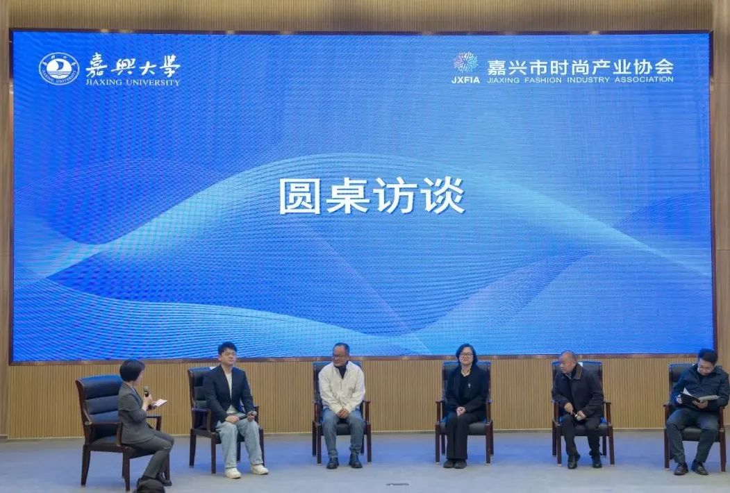 在圆桌访谈中,张华明和浙江新澳纺织股份有限公司总裁沈嘉枫、浙江爵派尔科技发展有限公司董事长贾伟平、嘉兴大学教务处处长吴艳、嘉兴南湖学院时尚设计学院副院长左雨欣等与会代表围绕今年嘉兴市两会“针织专业人才队伍建设”与“大学生时装周”两个提案展开深度研讨。