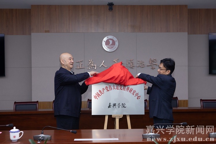 会上宣读了嘉兴学院中国共产党伟大建党精神研究中心成立文件;邵维正、卢新波共同为中国共产党伟大建党精神研究中心揭牌。