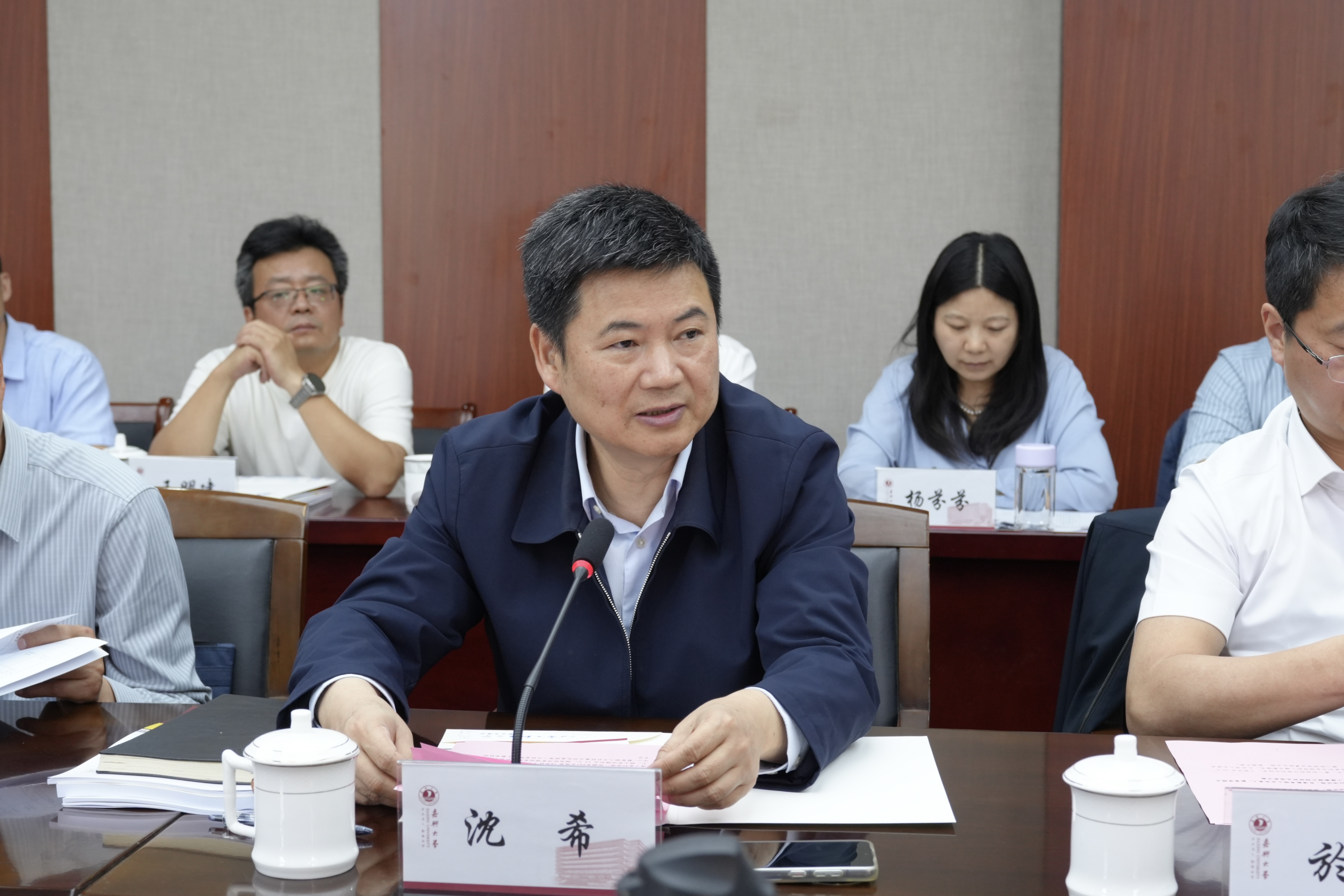 见面会上,沈希代表学校对专家组莅临指导表示热烈欢迎,并介绍了学校的历史沿革、办学特色以及近年来在学科建设与科研创新方面取得的显著成就。他指出,此次专家组来校开展检查与咨询工作,将为推动我校教育硕士专业学位人才培养提供重要契机和有力抓手。他期望专家组为教育硕士专业学位的建设与发展提出宝贵的意见和建议,为我校教育硕士培养工作精准把脉、开出良方。他表示,学校将以此次检查为契机,深入贯彻落实全国研究生教育会议精神,持续深化教育教学改革,优化学科布局,完善质量保障体系,努力推动教育专业学位研究生培养工作再上新台阶,为基础教育高质量发展贡献更多嘉大力量。