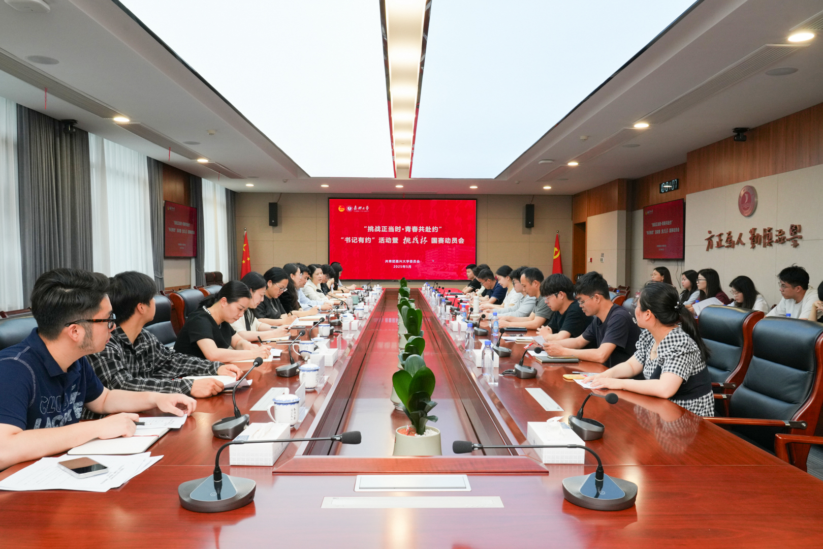 5月20日上午,我校“挑战正当时·青春共赴约”——书记有约活动暨“挑战杯”国赛动员会在梁林校区行政楼举行。校党委书记沈希与参赛团队师生代表齐聚一堂,共赴这一场青春之约。校党委副书记陈立力主持座谈会。