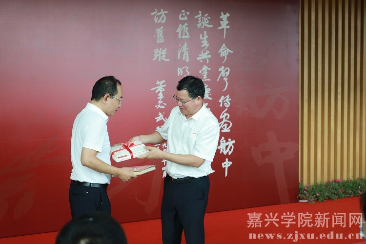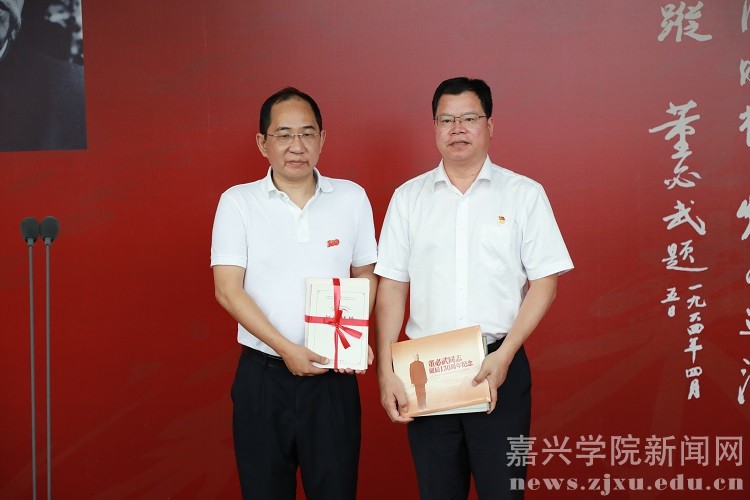 10月9日,为庆祝中国共产党成立100周年,由中共嘉兴市委宣传部、嘉兴市文化广电旅游局、嘉兴学院红船精神研究中心主办,嘉兴市文化馆承办的“访踪----董必武手迹展”在嘉兴市文化馆开幕。中共嘉兴市委常委、宣传部长祝亚伟,中共嘉兴市委宣传部常务副部长王登峰,嘉兴市文化广电旅游局局长张硕,我校党委副书记吴云达及董必武之孙董绍新、孙媳黄琼珍,王尽美之孙王明华,郭沫若外孙张鼎立,陆定一之孙陆继朴,叶剑英之孙叶弘毅,粟裕之孙粟志军,孔庆德外孙叶蕾,洪学智孙女洪蕾,张鼎丞之女张延忠等数位革命家后人出席开幕式。