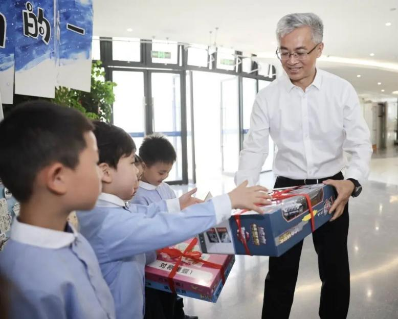 李军实地查看幼儿园的校园环境、户外场地等,听取幼儿园整体情况介绍,饶有兴致地观看孩子们的手工制作、科技展陈、户外运动等,祝福孩子们节日快乐、健康成长,希望园方组织丰富多样的活动,寓教于乐、融学于趣、化教于心,以更高质量的启蒙教育促进孩子德智体美劳全面发展。