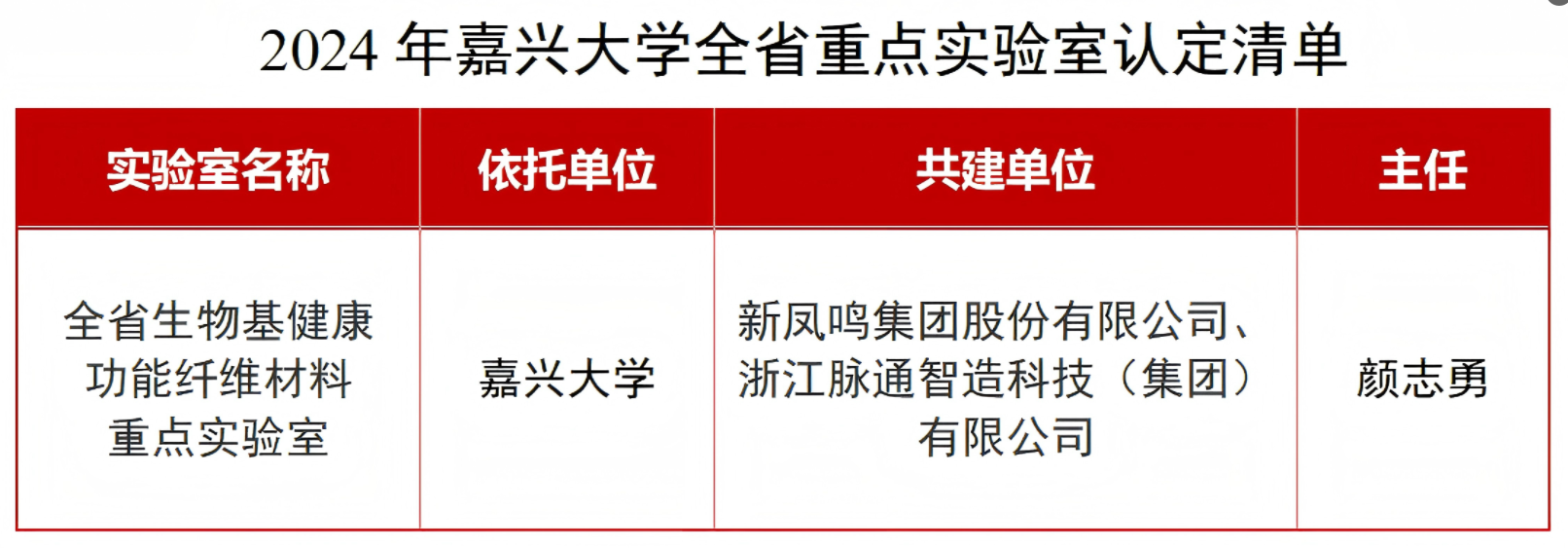 近日,浙江省科学技术厅公布了2024年全省重点实验室认定结果。由嘉兴大学牵头,联合新凤鸣集团股份有限公司、浙江脉通智造科技(集团)有限公司共同建设的“全省生物基健康功能纤维材料重点实验室”通过认定,这是嘉兴大学省级科研平台建设取得的又一重要成果。