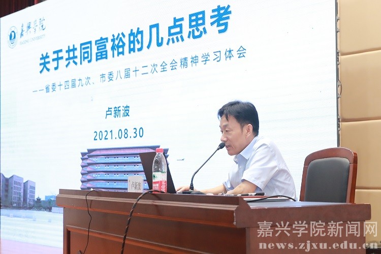校党委书记卢新波教授作题为“关于共同富裕的几点思考”的辅导报告