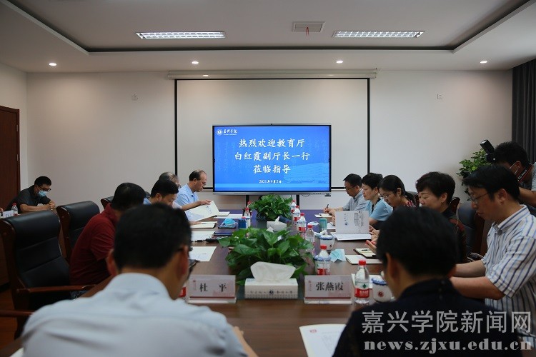 9月2日上午,省教育厅副厅长白红霞一行来校检查开学工作,实地查看学校开学准备情况并听取了相关工作汇报。嘉兴市教育局党委书记、局长武曜云及相关部门负责人陪同检查。校党委书记卢新波、党委副书记钱方明、副校长(主持日常工作)胡俊云、副校长杨培强参加工作汇报会。