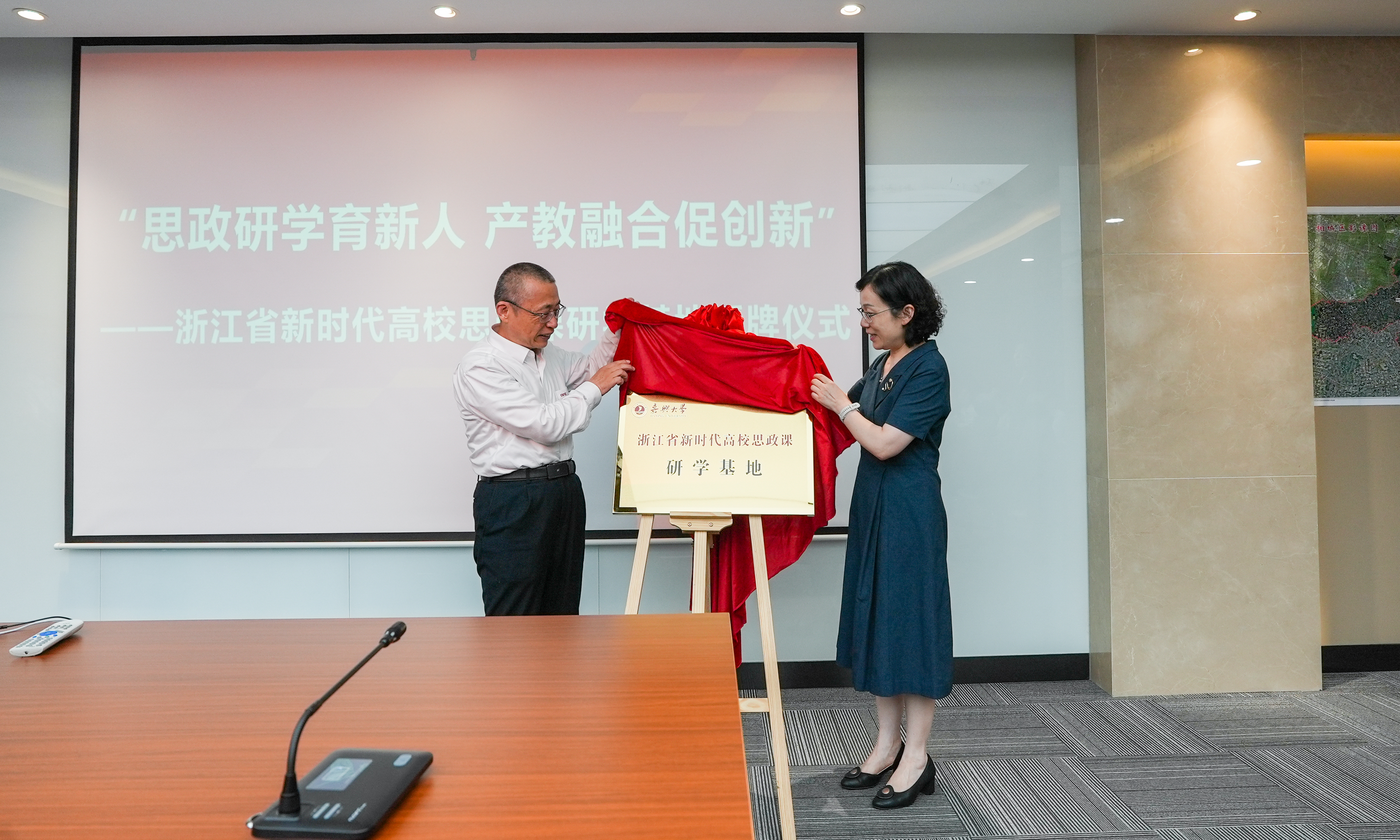 6月27日下午,我校“浙江省新时代高校思政课研学基地”授牌仪式在量子科技长三角产业创新中心举行。中国电科首席科学家、量子科技长三角产业创新中心主任陆军院士与我校党委委员、副校长(日常工作)张琦共同为基地揭牌。
