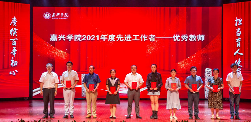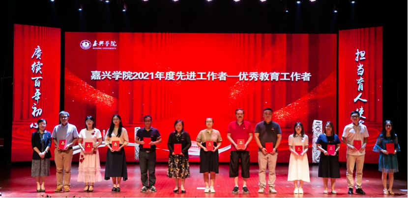 与会校领导为2021年满30年教龄教师、全省高校优秀共产党员、第六届全省高校“最受师生喜爱的书记”提名奖等先进个人颁发证书。