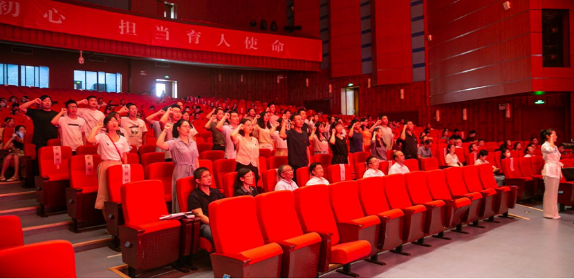 表彰大会上,还举行了新教师入职宣誓仪式。校大学生艺术团同学带来了歌曲《奉献》和歌伴舞《没有鲜花的舞台》,为教师们献上了节日的祝福。