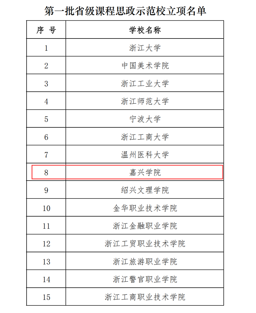 近日,浙江省教育厅发布《浙江省教育厅关于公布第一批省级课程思政教学项目建设立项名单的通知》,我校入选首批省级课程思政示范校,并获首批省级课程思政示范课程5门、省级课程思政教学研究项目4个、省级课程思政示范基层教学组织1个。