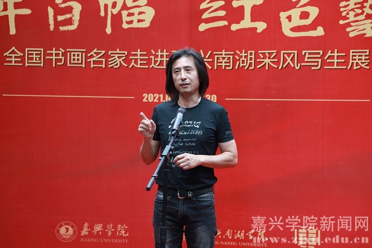 7月21日上午,由我校、嘉兴南湖学院和《中国美术报》社联合举办的“百年百幅·红色艺履”——全国书画名家走进嘉兴南湖采风写生展在嘉兴美术馆开幕。