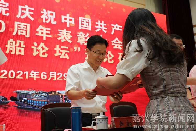 6月29日下午,学校在梁林校区TCL国际会议报告厅召开庆祝中国共产党成立100周年表彰大会暨2021年“红船论坛”理论研讨会。校党委书记卢新波出席会议并讲话,校党委副书记吴云达主持会议。党委副书记钱方明,党委委员、纪委书记,省监委驻嘉兴学院监察专员陈新友,副校长、党委委员张琦,副校长、党委委员杨培强,副校长陈荣达出席会议。