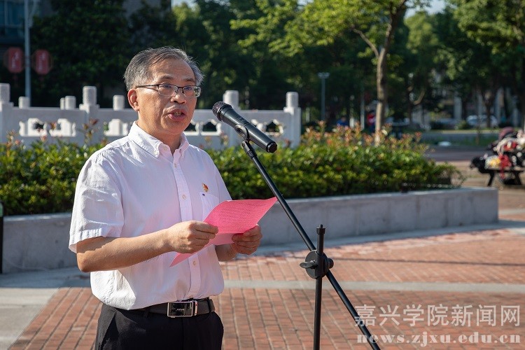 吴云达在讲话中指出,入党宣誓仪式是我校党史学习教育的一项重要内容,也是对全体党员一次深刻的党性教育,每一位党员要永远铭记这一神圣时刻,把入党誓词作为自己终身的追求。他强调,距离实现中华民族伟大复兴的目标越近,广大党员越不能懈怠,越要加倍努力。作为在南湖畔红船旁的一名党员,大家要牢记党的重托,不断从红船精神中汲取力量,以红船精神洗涤心灵、坚定信仰、永葆初心。他要求,全体党员要恪守忠诚之心,坚定理想信念;要恪守律己之心,争当先进表率;要恪守奋斗之心,不辱时代使命。