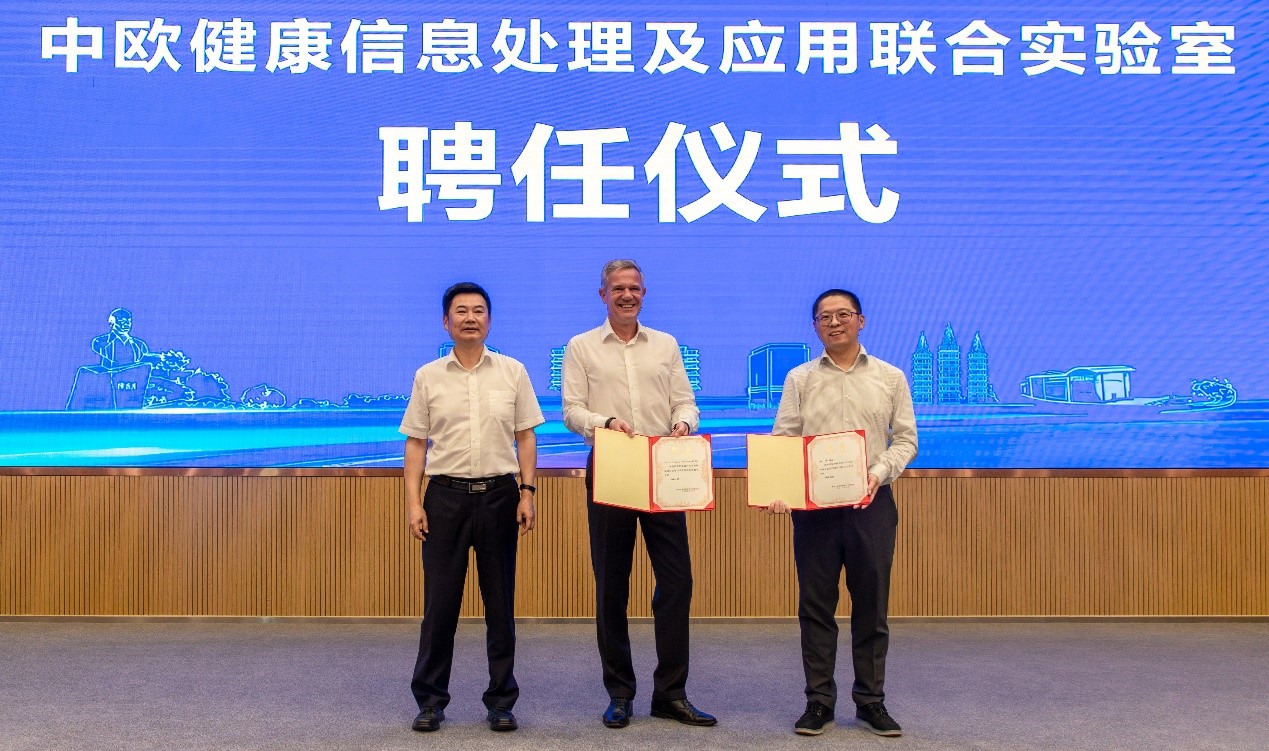 会议期间,沈希与Dahlweid共同为“嘉兴大学中欧健康信息处理及应用联合实验室”揭牌,实验室共建单位代表共同签订了合作意向书,标志着联合实验室的正式成立。