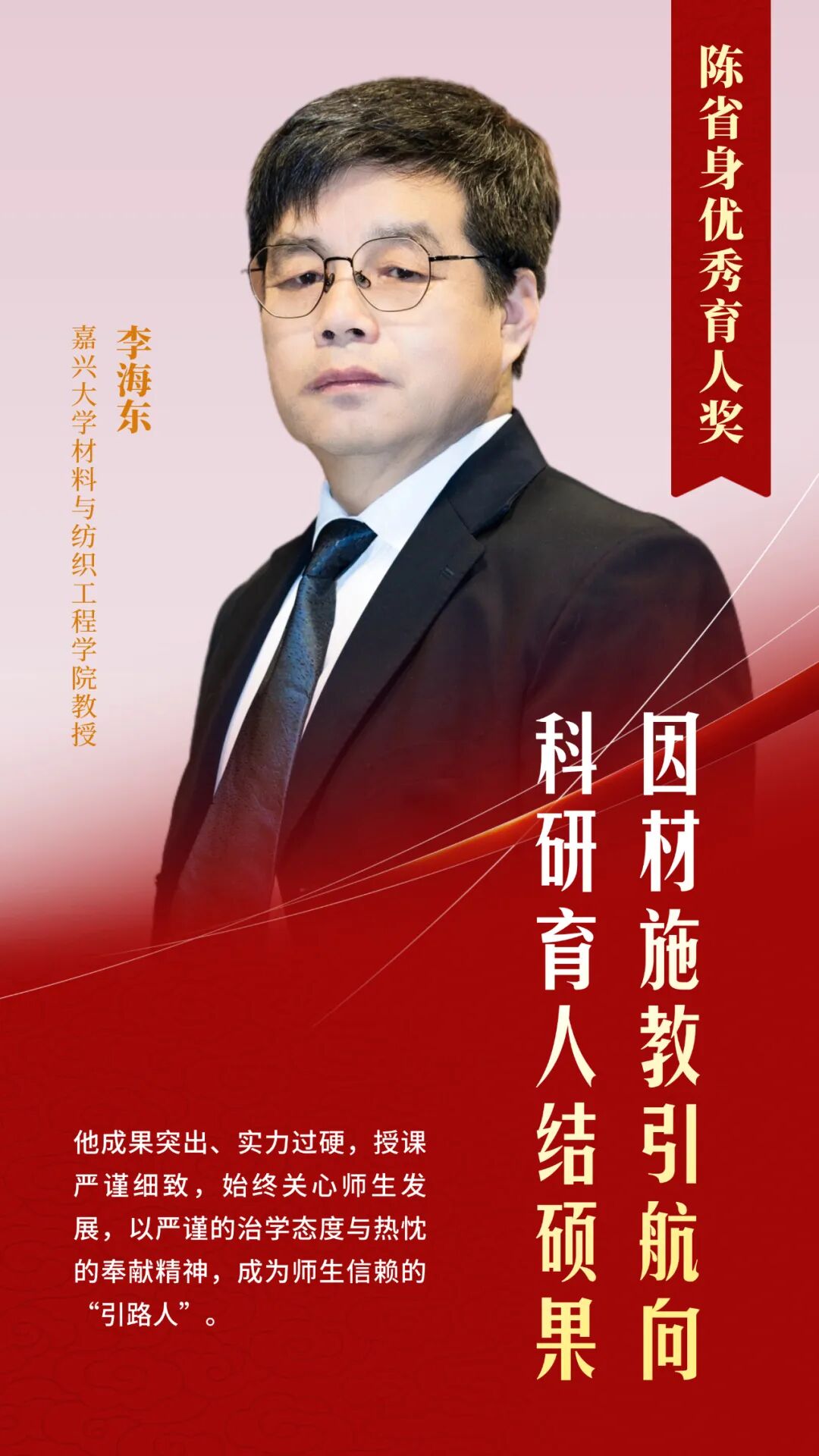 李海东,男,二级教授,材料与纺织工程学院原副院长、G60研究院纳米技术研究中心原负责人,获“我心目中的好老师”,在科研与教学领域均展现出卓越能力与担当。