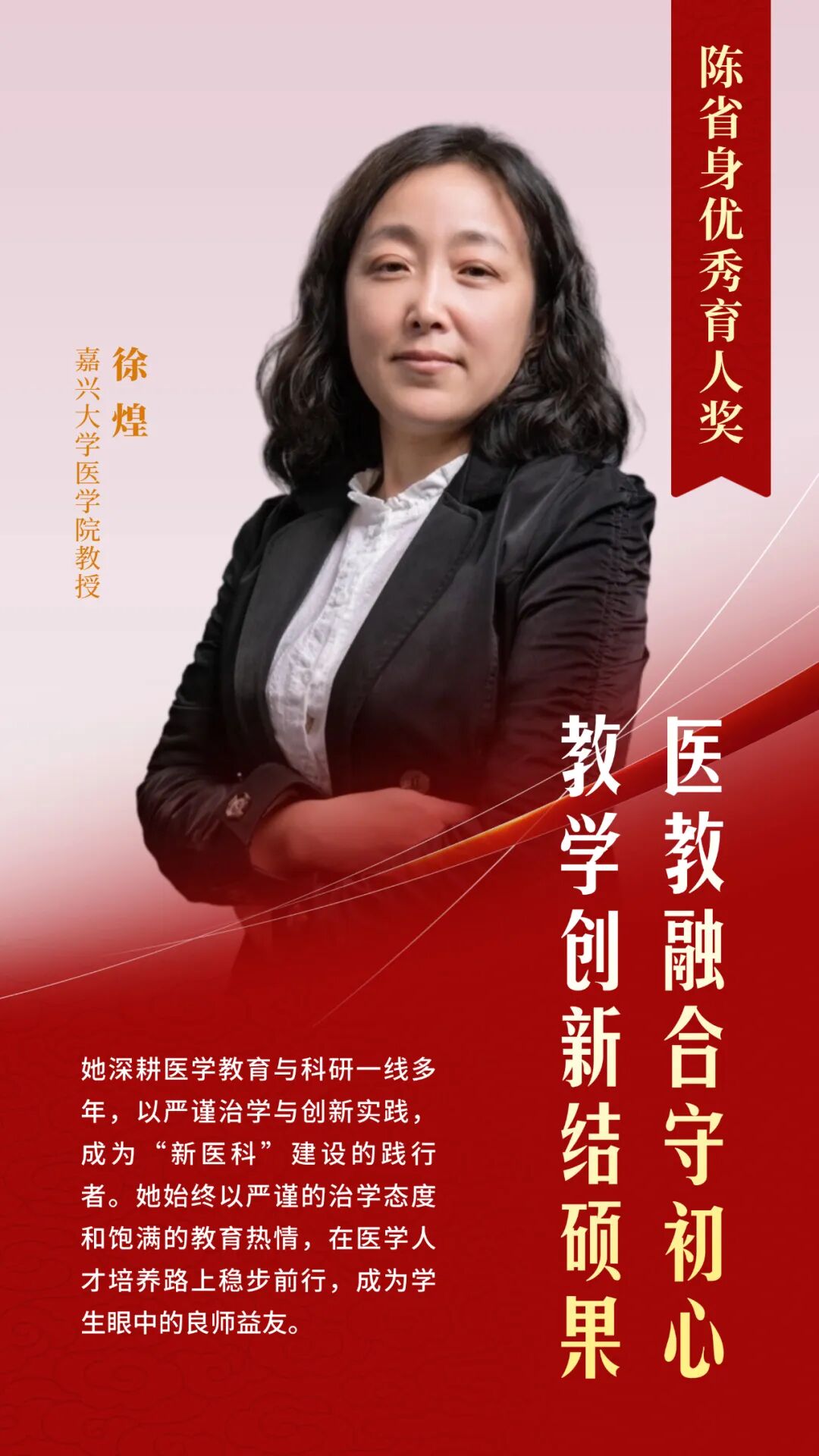 徐煌,女,嘉兴大学医学院教授,深耕医学教育与科研一线多年,以严谨治学与创新实践,成为“新医科”建设的践行者。