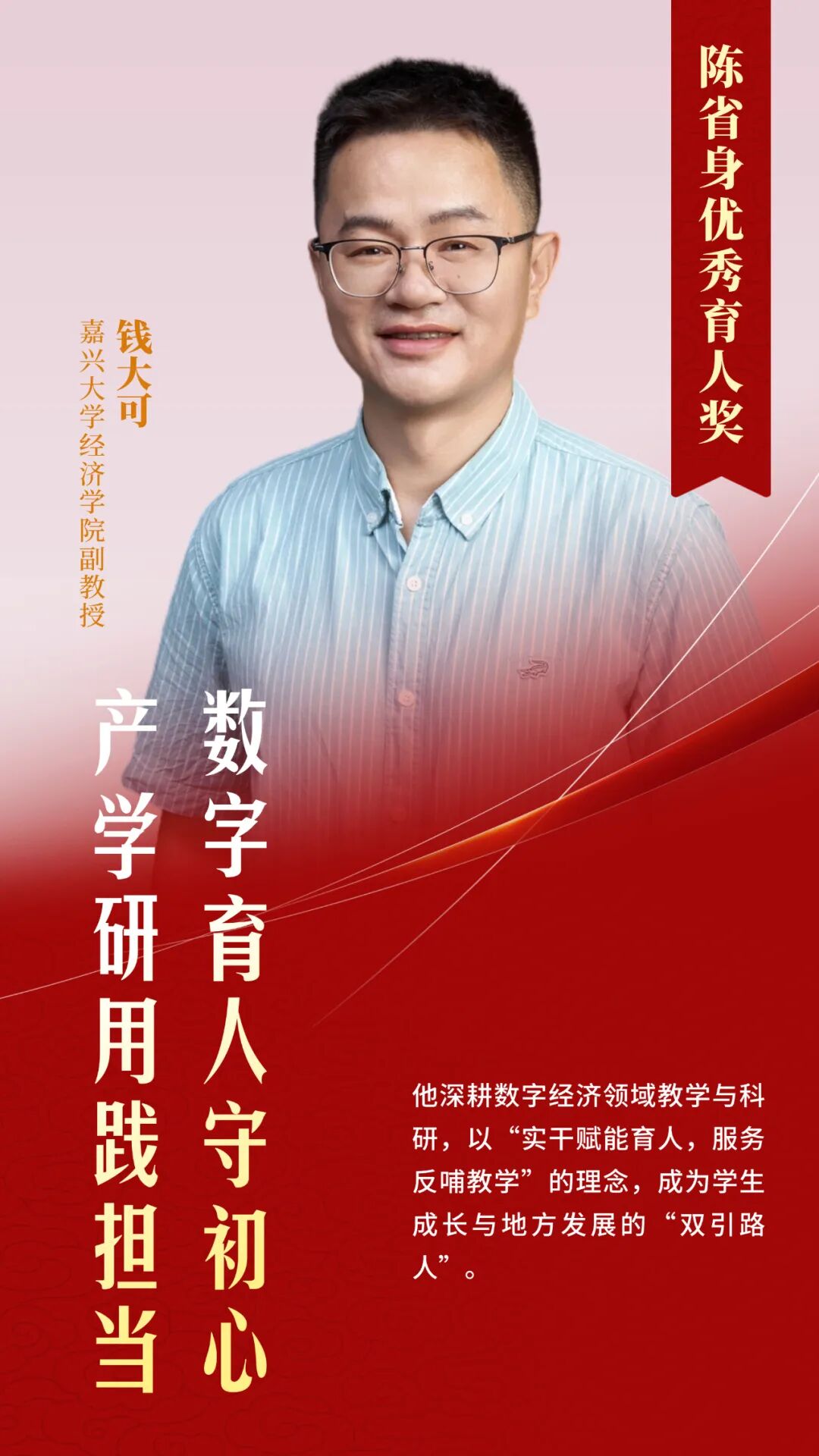 他们以红船旁的教育初心,将热爱与坚守融入课堂、科研与服务,是学校全体教职工立足岗位落实立德树人根本任务,勇担为党育人、为国育才使命的生动缩影。今天,我们对9位获奖教师的典型事迹进行简要介绍,致敬他们深耕三尺讲台的赤诚与坚守,致敬全校所有躬耕教坛的师者,也愿这份育人力量激励嘉大师者持续开拓创新、爱岗敬业、潜心育人,培养更多担当民族复兴大任的时代新人,为教育强国和浙江教育强省建设贡献嘉大力量。