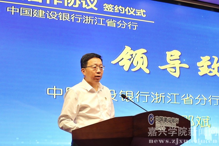 邵斌代表建设银行浙江省分行感谢嘉兴学院长期以来对建行工作的支持,并介绍了银行坚持转型创新、聚集社会痛点,积极承担社会责任方面的探索和实践。他表示,建行作为有理想、有情怀、有温度的国有大行,嘉兴学院作为嘉兴蕴含“红色文化”的综合性高等学府,相信通过本次全面战略合作协议的签约,双方将开启银校合作的新篇章,通过通力合作,共同为建设“五彩嘉兴”贡献有生力量。