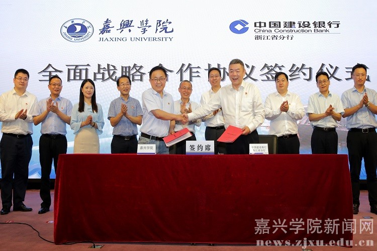 中国建设银行浙江省分行相关处室、嘉兴分行相关负责人及学校相关部门(单位)负责人参加签约仪式。