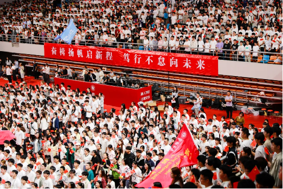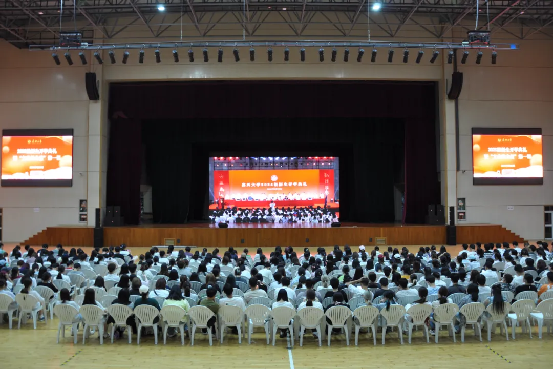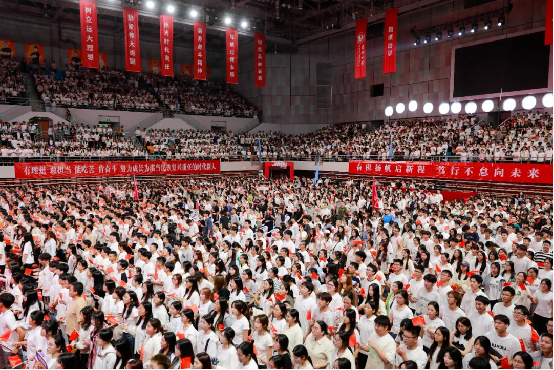 学校相关部门负责人、各学院负责人、2025级研究生、本专科生、国际学生,新生班主任、辅导员代表、附属医院以及附属学校师生代表参加典礼。