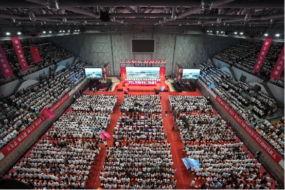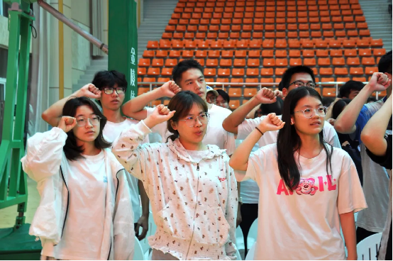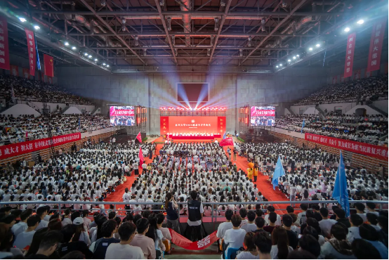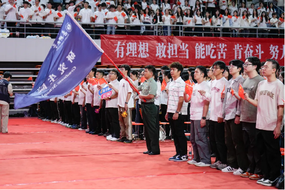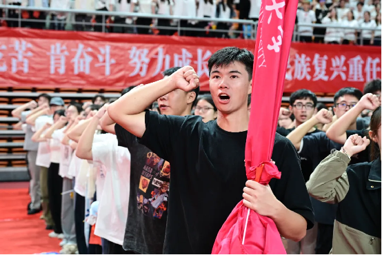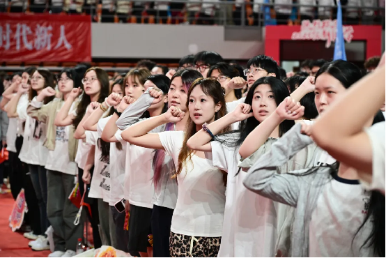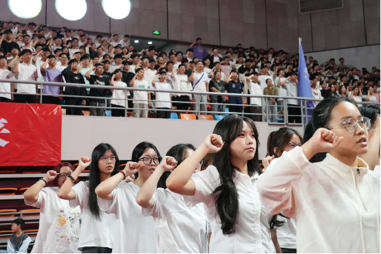 “请党放心,强国有我!”全体新生庄严宣誓,铮铮誓言响彻场馆,展现了嘉大学子的坚定信念和责任担当。