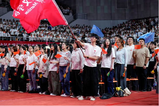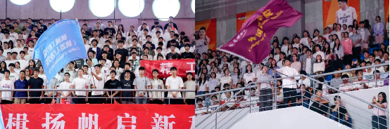 “全体新生向嘉兴大学报到!”典礼上,各学院新生代表依次挥动院旗、起立报到,声动全场、经久不息,展现了嘉大学子的蓬勃朝气和昂扬锐气。