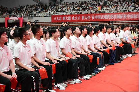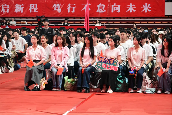梅德庆指出,今年是中国人民抗日战争暨世界反法西斯战争胜利80周年。回望那段峥嵘岁月,先辈们以坚韧不拔的意志,在黑暗中探寻民族复兴的曙光,用鲜血和生命铸就了伟大的抗战精神,为我们提供了宝贵的精神财富。当代青年生逢盛世,同时也面临着前所未有的未知挑战。梅德庆勉励新生,要拥抱未知,做内心笃定的嘉大人。秉持“方正为人 勤慎治学”校训精神,始终以学业为重,自律坚持,学好每一门课程、悟透每一则原理、做好每一次实验,在实现一个个“小目标”的过程中拾级而上、行稳致远。要拥抱未知,做勇于探索的嘉大人。在学好专业知识的基础上,锻炼创新思维、塑造探索能力,从“会读书的人”转变成“会创造的人”,将“人工智能”转化为“人的智慧”,将奇思妙想转化为实际成果,在一次次的探索中开拓视野、增长才干。要拥抱未知,做追求卓越的嘉大人。永葆求知若渴的进取心,在挑战中磨砺专业深度和综合素养,追求“做得好”“做得精”,既不放过细微之处,也不畏惧宏大命题,将“优秀”变成一种习惯,在一次次的追求中勇攀高峰、争创一流。要拥抱未知,做心系家国的嘉大人。坚守一代代嘉大人“闻道未央,报国振邦”的价值追求和使命担当,自觉传承红色基因、守牢红色根脉,心怀“国之大者”,敢于“挑大梁”、勇于“当主角”,把“小我”融入“大我”,在青春的赛道上,与时代同行、为祖国增辉、给世界添彩。