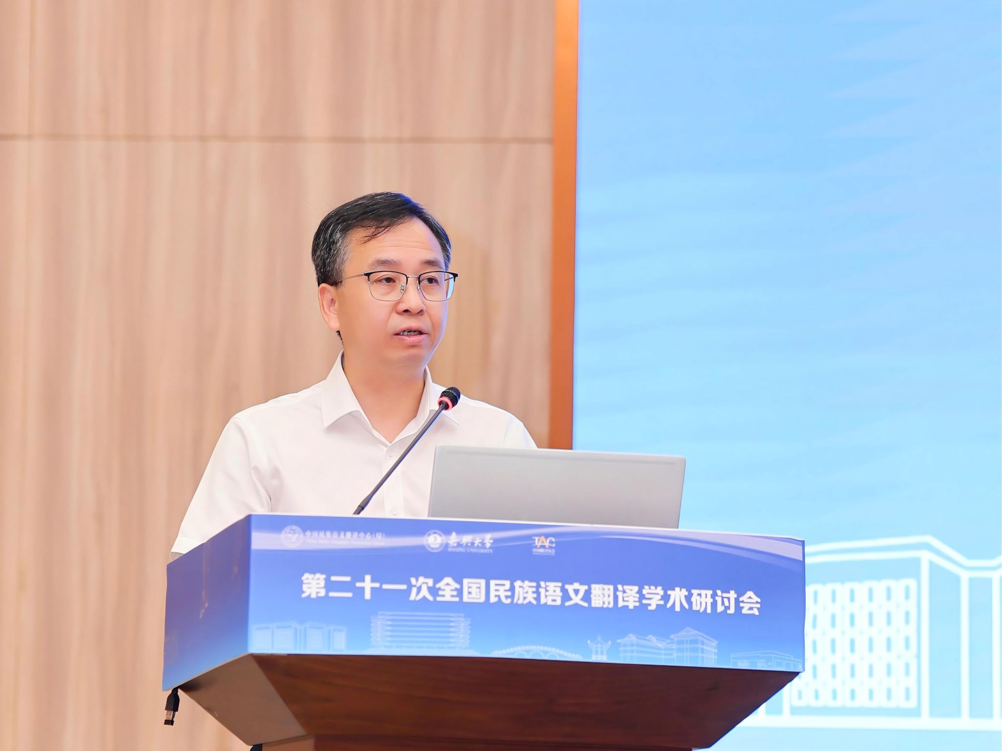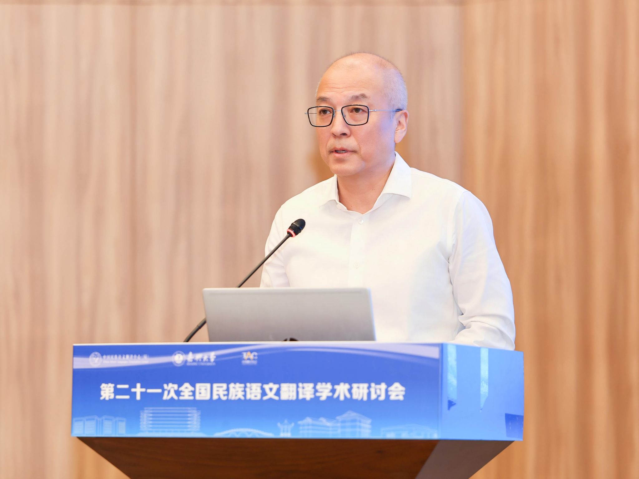 陈明华在致辞中指出,民族语文翻译是中华民族共同体形成发展的重要力量,也是马克思主义中国化的重要力量。今年是中国民族语文翻译局成立70周年,新时代民族语文翻译工作应加强对民族语文翻译领域重大基础性和现实性问题的研究阐释,加快对民族语文翻译领域智能翻译技术的应用研究,深化中国翻译界的跨学科跨区域跨语种交流合作,为中国自主翻译理论体系构建筑牢中国文化根基、打开理论创新空间。