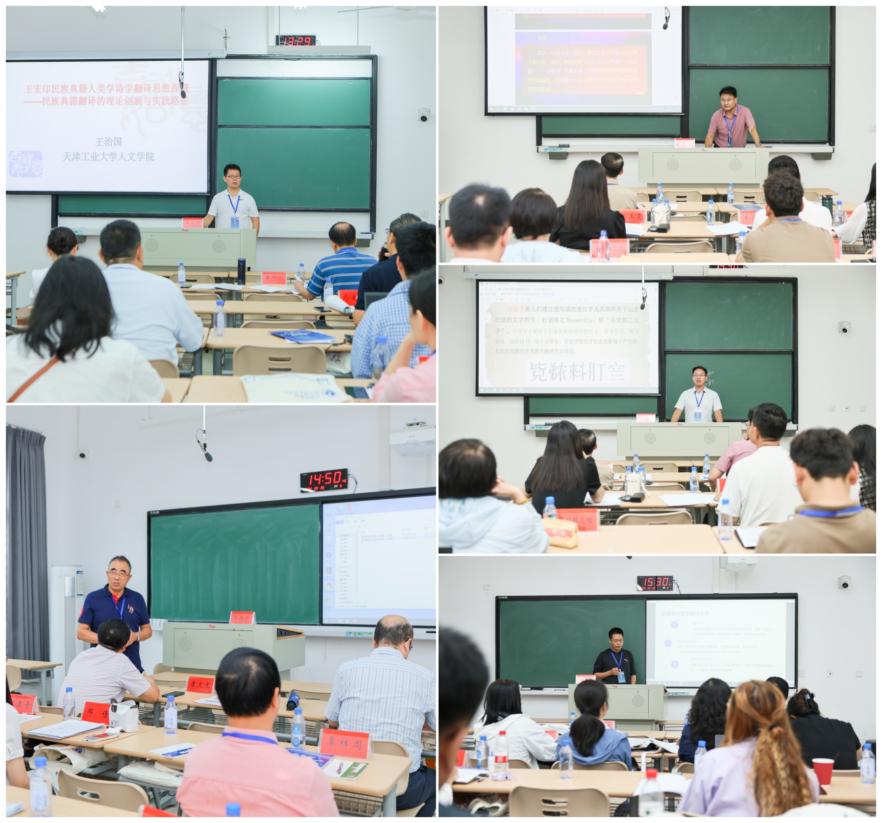 四位特邀专家围绕党政文献翻译、典籍翻译等内容分别作了精彩的学术报告。中央党史和文献研究院第六研究部副主任、译审刘亮,就中央文献核心概念对外翻译的方法论、制度化、规范化、社会化问题进行了深入论述。中国社会科学院民族文学研究所教授、博士生导师阿地里•居玛吐尔地,生动展示了《玛纳斯》史诗经由持之以恒的翻译和研究实现多语种对外传播,成为人类非物质文化遗产的代表作,这部史诗以其独特的文化价值向世界展示中华文化的丰富多彩。河北师范大学外国语学院教授、博士生导师李正栓,以《七律·长征》为例,融合译者行为批评理论和体认翻译学理论研究译者群体体认行为,为毛泽东诗词英译研究提供新视角,推动了翻译研究向人类心智活动深入。中国民族语文翻译中心(局)蒙古语文室主任、译审哈森从词句概念的精准厘定、术语体系的规范统一、逻辑结构的合理解构与重构、修辞风格的恰当把握四个方面,以蒙古文翻译为例论述分析,为党政文献翻译提供借鉴。