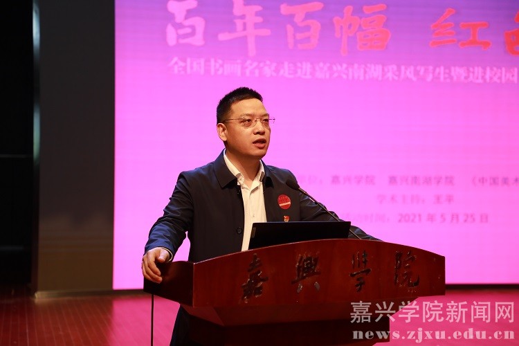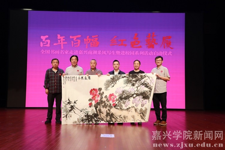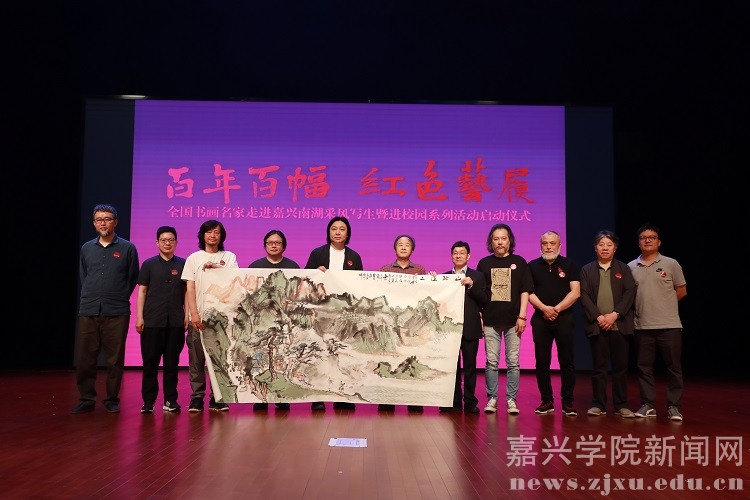 5月25日,由我校、嘉兴南湖学院和《中国美术报》社联合举办的“百年百幅·红色艺履”——全国书画名家走进嘉兴南湖采风写生暨进校园系列活动在我校梁林校区剧场举行启动仪式。此次活动共邀请了来自全国各地的30余位书画名家齐聚嘉兴进行书画艺术创作,展现当代中国书画家的精神风貌,展现南湖畔、红船旁高校青春向上的校园文化氛围,展现中国特色社会主义文化的独特魅力,以此庆祝中国共产党成立100周年。
