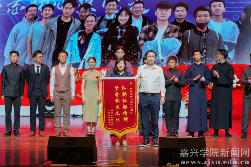 演出结束后,该校党委副书记张光霁向《初心》话剧团队赠送了锦旗。此次展演为浙江中医药大学师生带来了一堂生动形象的党史学习课,在师生中引起了强烈反响。