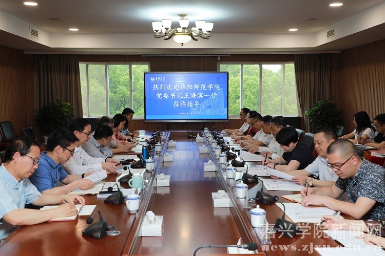 王海滨介绍了绵阳师范学院的基本情况和办学特色。双方就申硕工作、产教融合发展、应用型建设、校园文化(红色文化)建设等方面进行了深入交流。