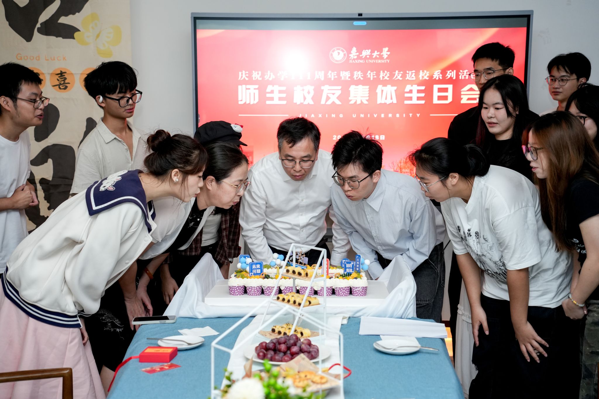 学校以“同生共庆,薪火相传”为主题,举办了嘉兴大学办学111周年校庆日暨师生校友集体生日会。校长梅德庆、副校长王立玮与30余名校庆日生日的师生校友代表,共庆嘉大华诞,共享生日温馨。