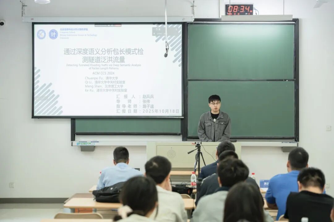 本期研讨厅现场课聚焦人工智能、网络空间安全等学科前沿议题,在嘉兴大学梁林校区的7间教室同步开讲。来自清华大学、北京大学、复旦大学等16所高校的28位研究生代表围绕智能算法安全、数据可信计算、AI系统可解释性等前沿研究进行学习成果汇报,40余所高校的师生线上线下同步参与课程研讨。