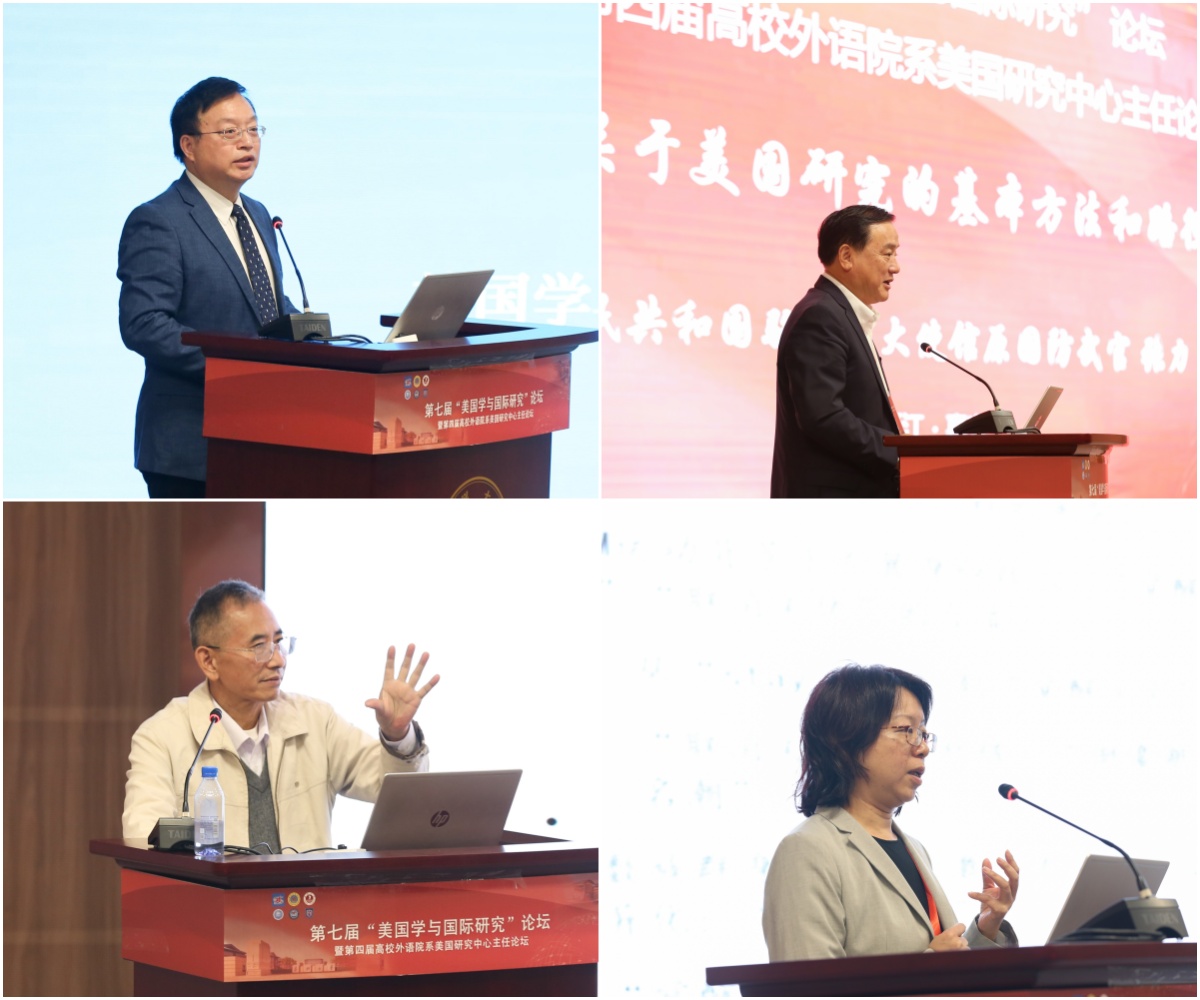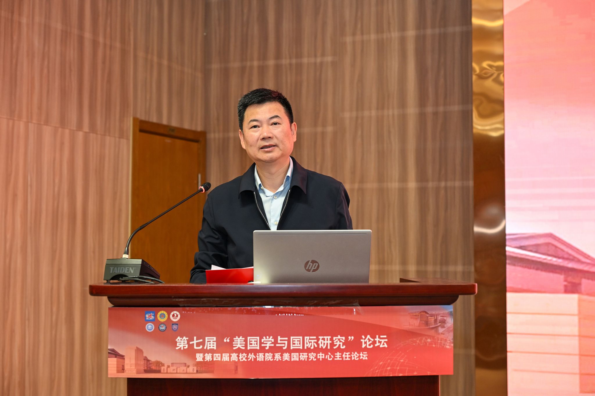 论坛还开设第四届高校外语院系美国研究中心主任论坛,由西南交通大学外国语学院美国研究中心主任李庆成副教授、北京外国语大学美国研究中心主任陈崛斌副教授、国防科技大学外国语学院美国研究中心主任王波教授分别作专题发言。