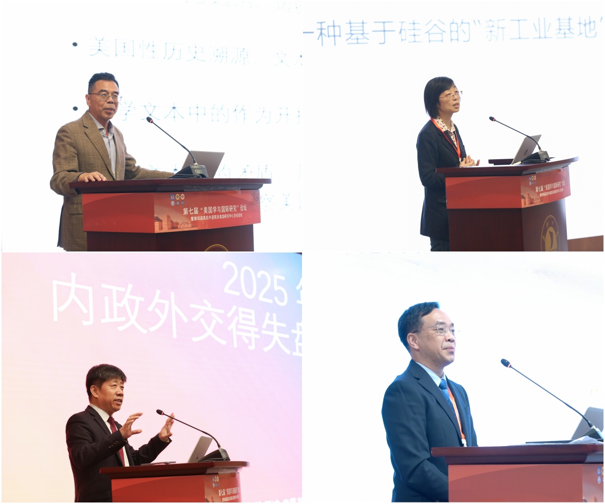 围绕“区域国别学视域下的美国研究”等主题,论坛设置12场主旨报告,邀请中国社会科学院美国研究所副所长、研究员袁征,中华人民共和国驻美国大使馆原国防武官、退役少将张力,上海财经大学外国语学院特聘教授李超民,上海外国语大学美国研究中心主任、教授林玲,华东师范大学外语学院美国研究中心主任、教授金衡山,国防科技大学外国语学院教授王萍,浙江外国语学院美国研究中心主任、教授王冲,嘉兴大学外国语学院教授肖欢,黑龙江大学外文学院(区域国别学院)执行院长、教授吴承义,南京审计大学外国语学院院长、教授江振春,中国社会科学院美国研究所社会文化室负责人、副研究员张佳俊,国防科技大学外国语学院副教授李静作主旨报告。