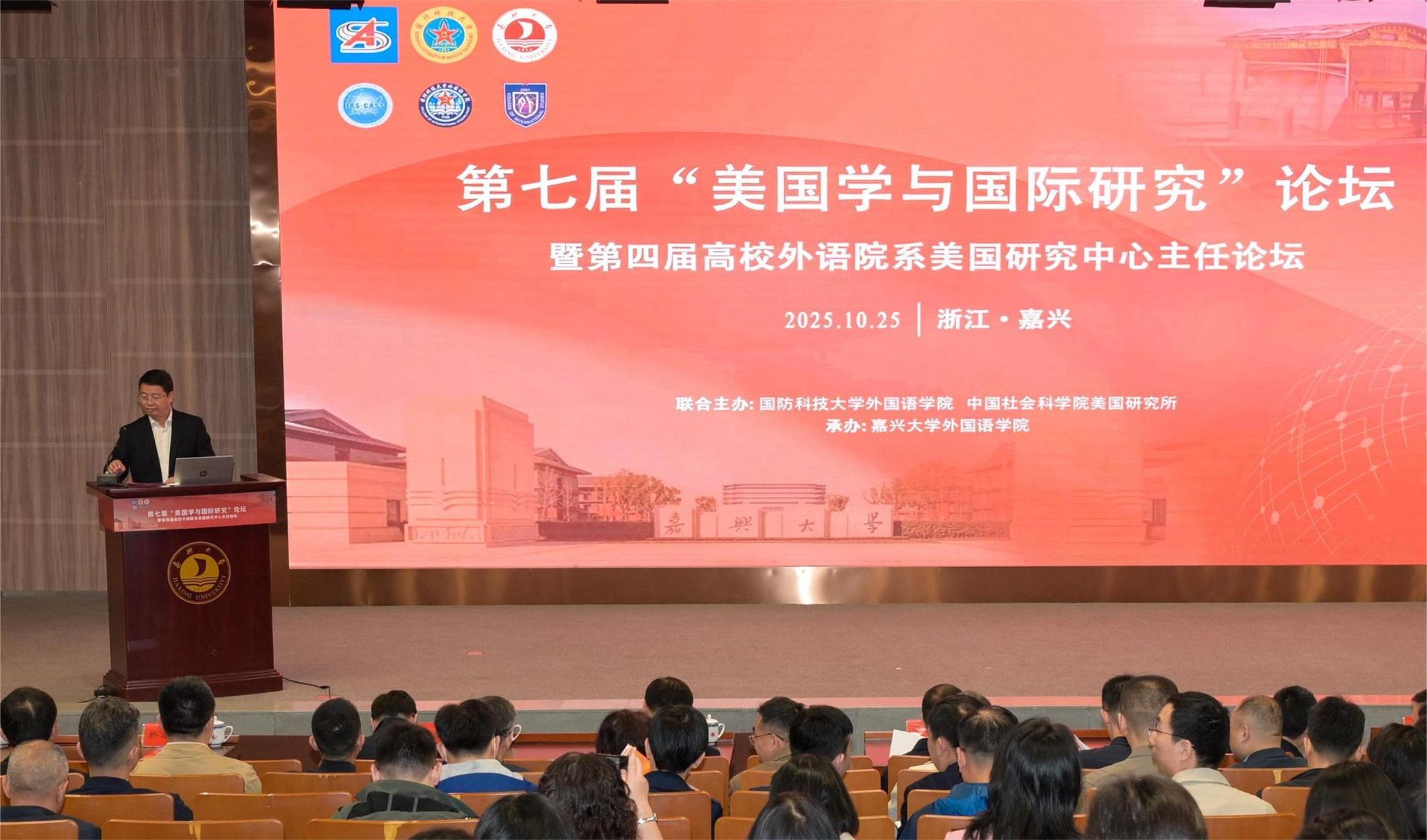 10月25日,第七届“美国学与国际研究”论坛暨第四届高校外语院系美国研究中心主任论坛在我校召开。论坛由国防科技大学外国语学院和中国社会科学院美国研究所联合主办,嘉兴大学外国语学院承办。国防科技大学外国语学院美国研究中心主任王波教授、中国社会科学院美国研究所副所长袁征研究员出席开幕式并致辞,中共嘉兴市委常委、秘书长沈雨祥出席开幕式。校党委书记沈希致辞,校党委委员、副校长於建明主持开幕式。