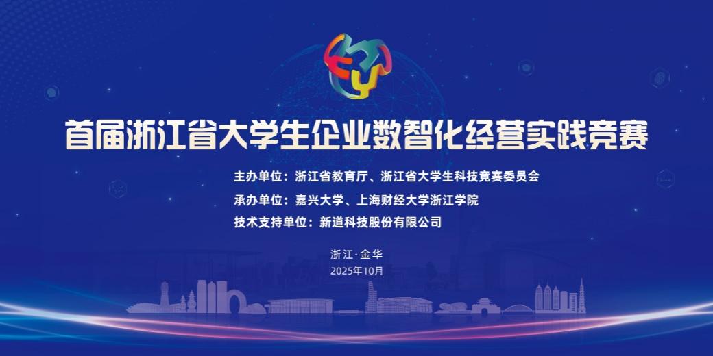 10月25日,由浙江省教育厅、浙江省大学生科技竞赛委员会主办,嘉兴大学与上海财经大学浙江学院共同承办的首届浙江省大学生企业数智化经营实践竞赛决赛在金华举行。我校党委委员、副校长张琦,上海财经大学浙江学院院长、党委副书记江晓东,浙江广厦建设职业技术大学党委委员、副校长孙丽雅,新道科技股份有限公司浙江区总经理程帅出席闭幕式。