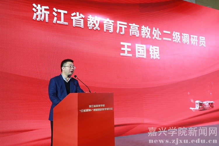 王国银在致辞中指出,课程思政是新时代高校立德树人的战略举措,各地各校要高度重视大学生党史学习教育和课程思政教育,不断从百年党史和红船精神中汲取信念的力量、真理的力量、前进的力量,用鲜活的思政素材厚植爱党、爱国、爱社会主义的情感,不断提升课程思政铸魂育人的成效;要充分运用“红色根脉”资源,发挥好“红色根脉”优势,把党的历史学习好、领悟好,把党的成功经验传承好、发扬好,不断增强大学生的政治认同、国家意识、人文素养、科学精神和职业素养。就做好课程思政建设,他强调,各地各高校一要加强顶层设计;二要充分发掘各种资源;三要加强对教师的引导和培训;四要建立健全课程思政的评价激励机制;五要树立大思政观念,集中力量构建大思政育人体系。
