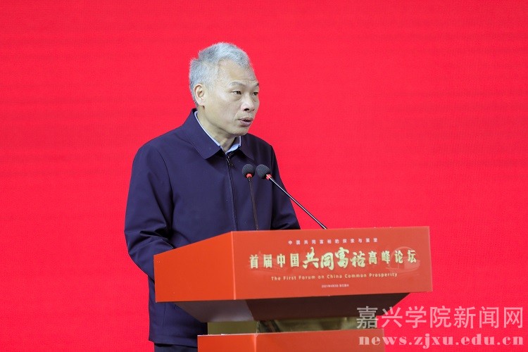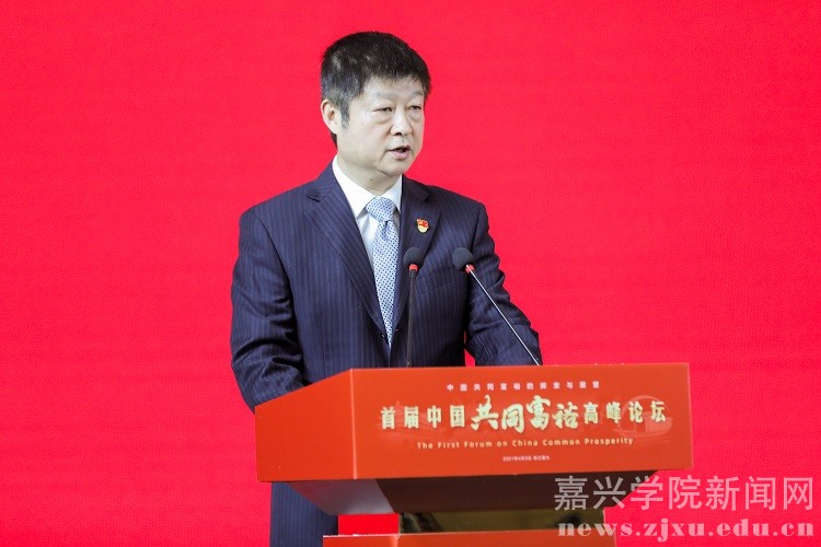 陈先春在致辞中指出,今年两会期间,国家明确指出要支持浙江高质量发展建设共同富裕示范区,主要是探索推进共同富裕的体制机制和制度体系,形成可复制可推广的经验,建立示范区的标杆。首届中国共同富裕高峰论坛在嘉兴召开,来自全国各地的权威专家和一流学者汇聚中国革命红船起航地,围绕共同富裕理论演变和实践探索、乡村振兴与农民收入、收入分配与人力资本等主题开展深入的研讨交流,必将有助于我们更加全面理解和把握共同富裕的理论内涵,有助于深入推动城乡融合和区域协调,催生出更多具有学术价值的研究成果。他希望,各位领导和专家学者借此机会到浙江各地多走走多看看,为繁荣浙江省哲学社会科学、为推进浙江省共同富裕建设多提宝贵意见。