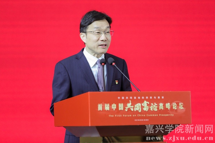 4月3日,由我校主办、我校中国共同富裕研究院承办的首届中国共同富裕高峰论坛在中国革命红船起航地——浙江嘉兴开幕。中共嘉兴市委常委、宣传部长祝亚伟,浙江省社会科学界联合会副主席陈先春,嘉兴市人民政府副市长邢海华,中共嘉兴市委副秘书长、市委政策研究室主任汪洪波等出席论坛。南开大学原副校长、南开大学中国特色社会主义经济建设协同创新中心主任逄锦聚教授和我校党委书记卢新波教授共同担任论坛主席。来自中国科学院、中国社科院等科研院所和浙江大学、复旦大学、中国人民大学、南开大学、南京大学等高校的经济学家,地方政府代表、企业代表、我校师生和校友代表等百余人参加线下研讨。论坛还通过新华网、禾点点进行线上同步直播,近70万人通过观看线上直播参与本次论坛。论坛开幕式由我校副校长胡俊云主持。